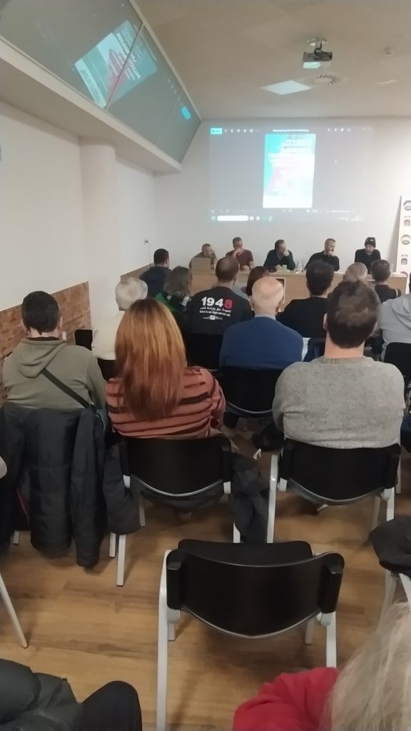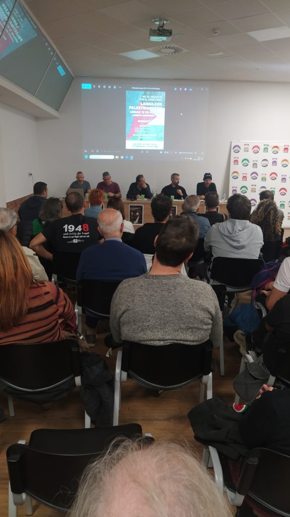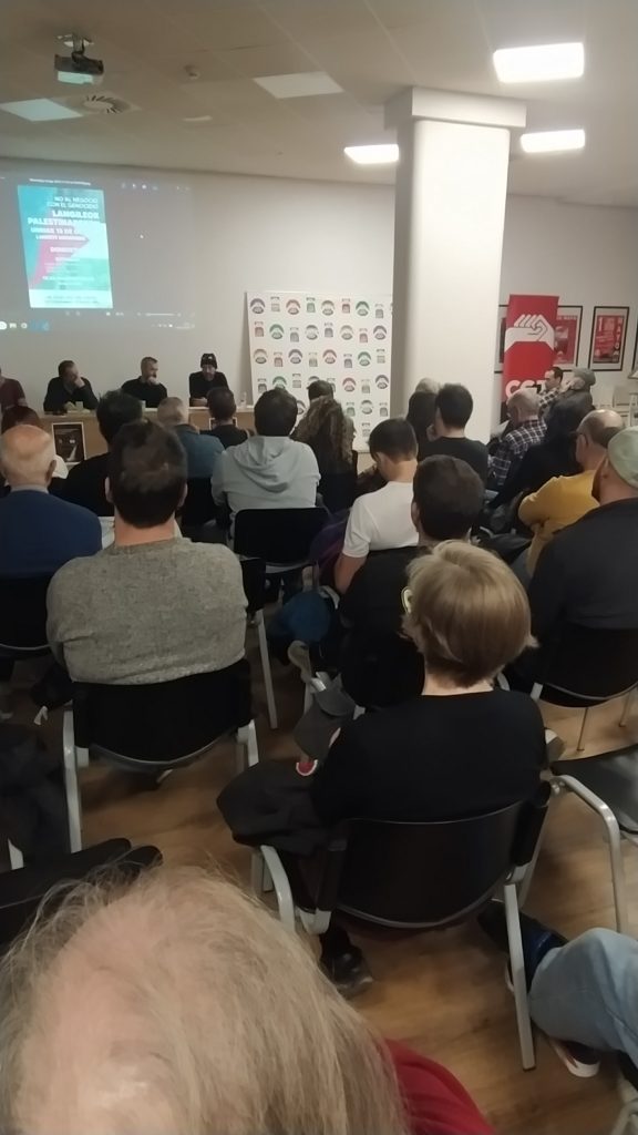 Representantes sindicales e invitados exponen el malestar y la denuncia existente entre trabajadores y trabajadoras, ciudadanos y ciudadanas, que existe y se evidencia ante la incursión territorial que demuestra la invasión y colaboración colonial de la Tierra Palestina.