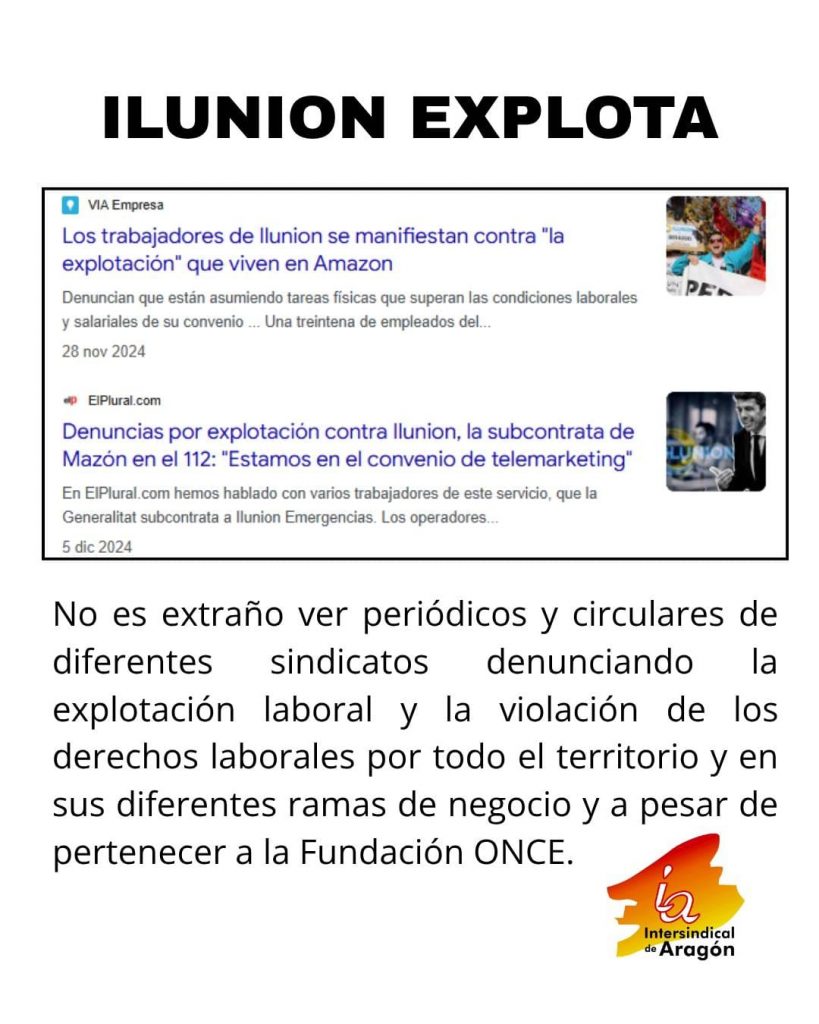 🔴Lanzamos esta campaña para señalar a ILUNION, La ONCE y su Fundación como explotadores.