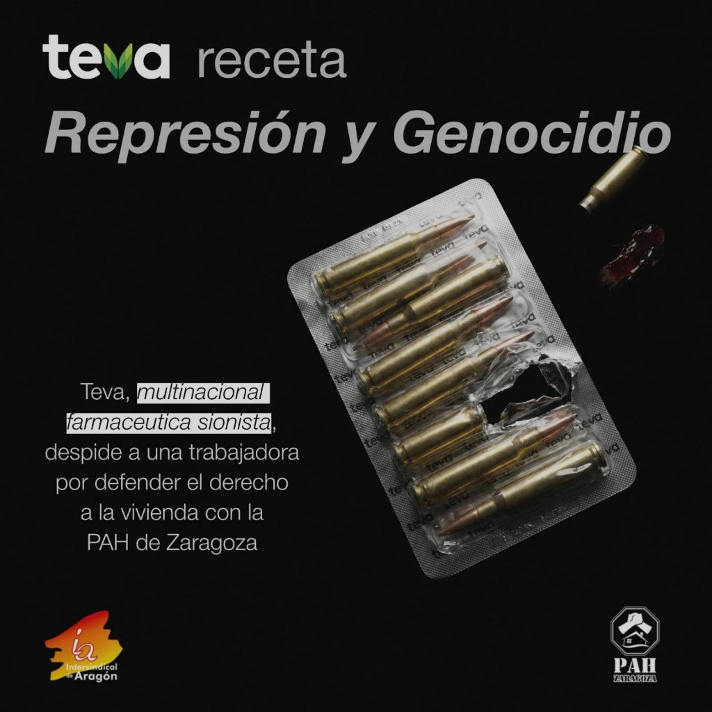 Obligatoriamente debemos incidir en el carácter sionista que tiene esta multinacional, que desde el 7 de octubre de hace dos años ha estado enviando correos corporativos internos declarándose abiertamente sionistas o dando la “oportunidad” de donar parte del sueldo como trabajador de Teva para Israel.